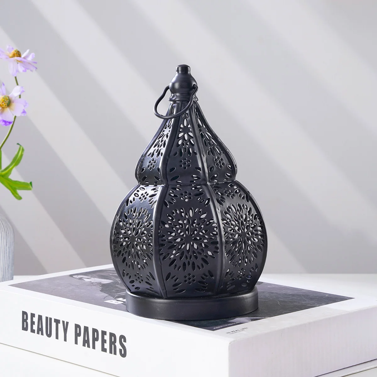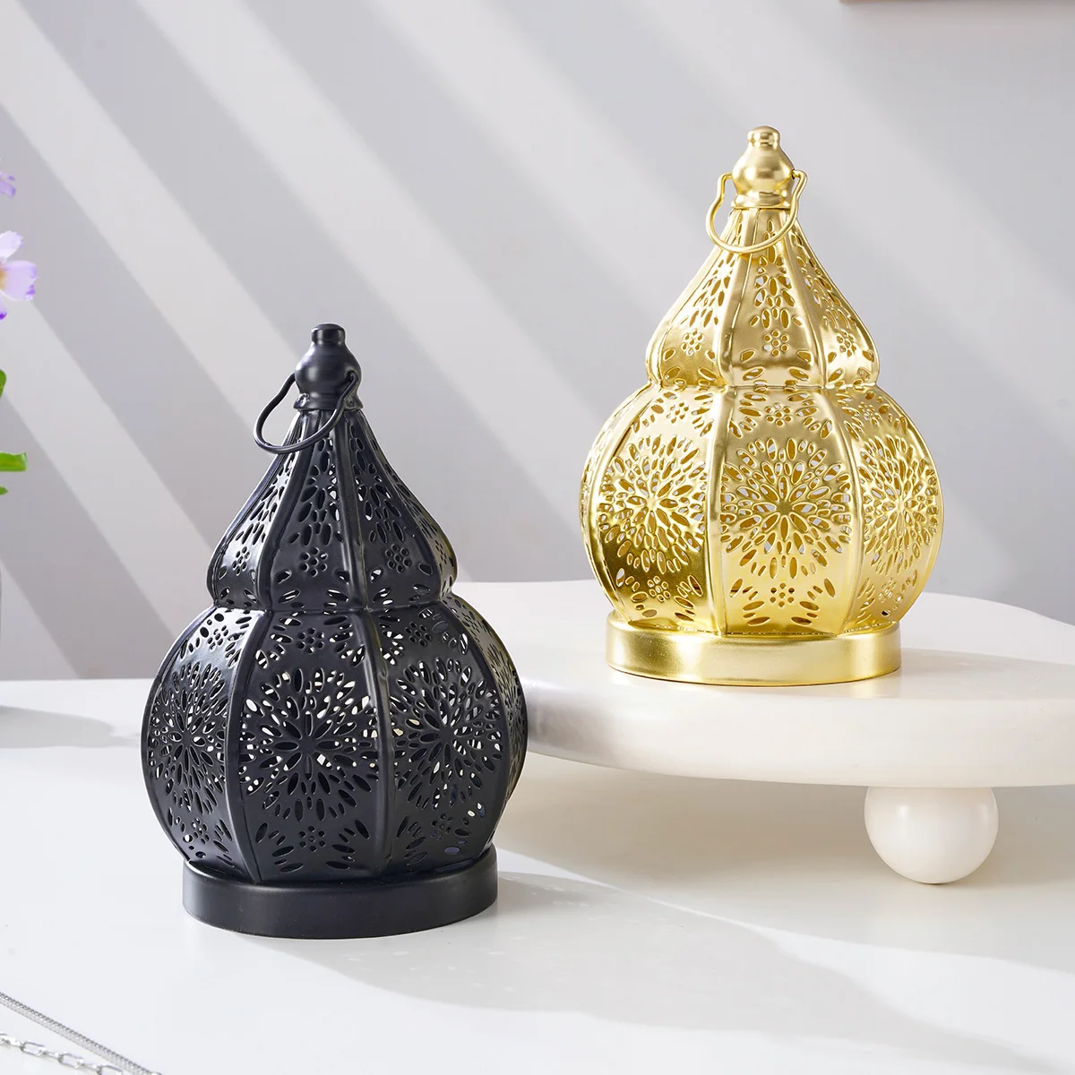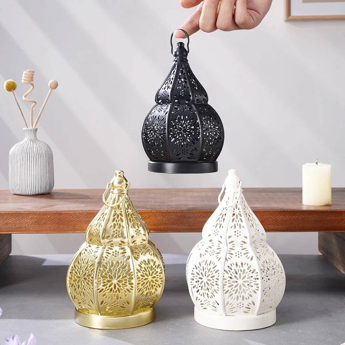 1PC, European-style ironwork hollowed-out gourd-shaped decorative candlestick, Moroccan decorative style candlestick