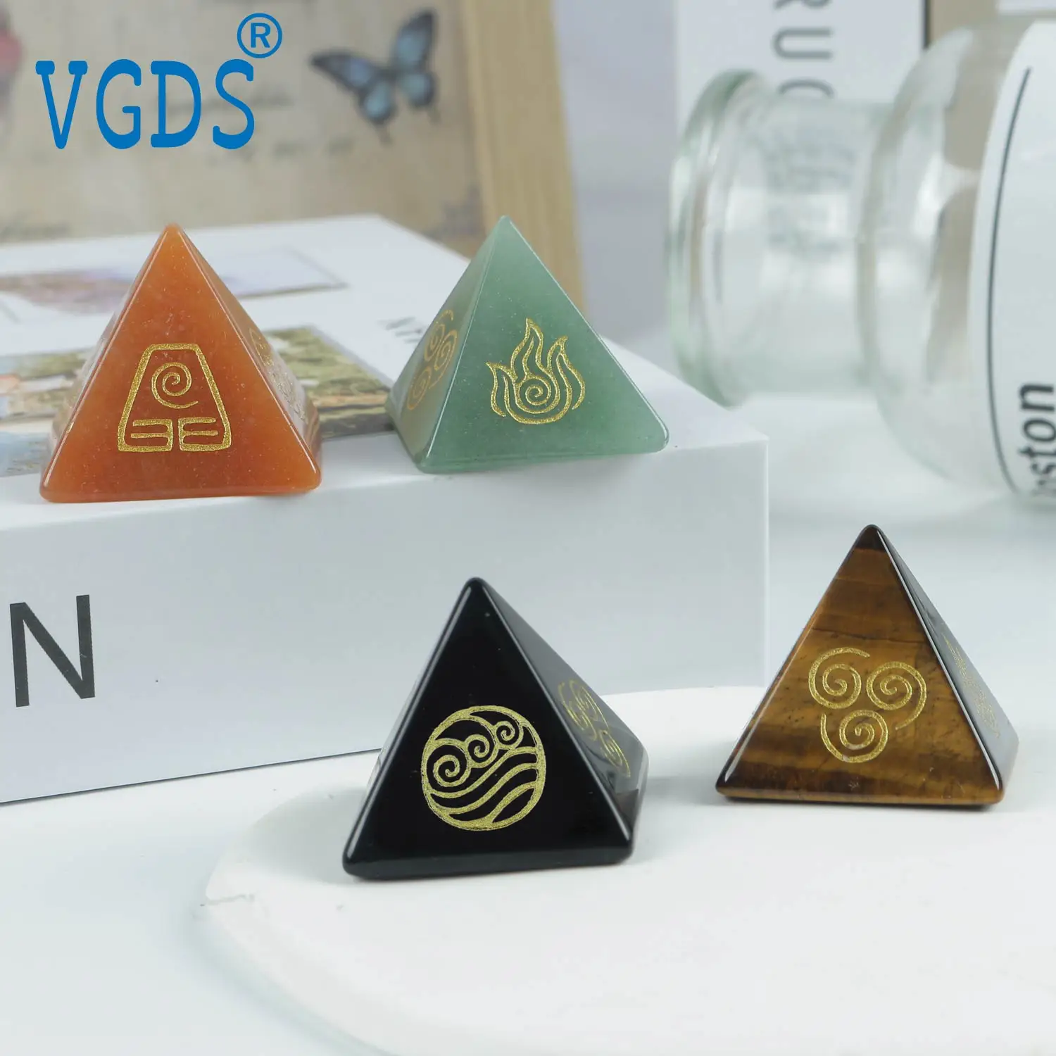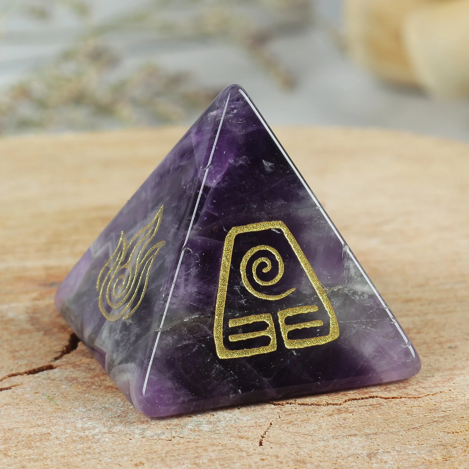 2025 Hot sales Natural Crystal Quartz Amethyst Gem Pyramid Four Element Air Water Fire Earth Symbol Energy Jewelry Healing Stone