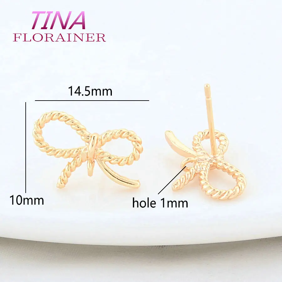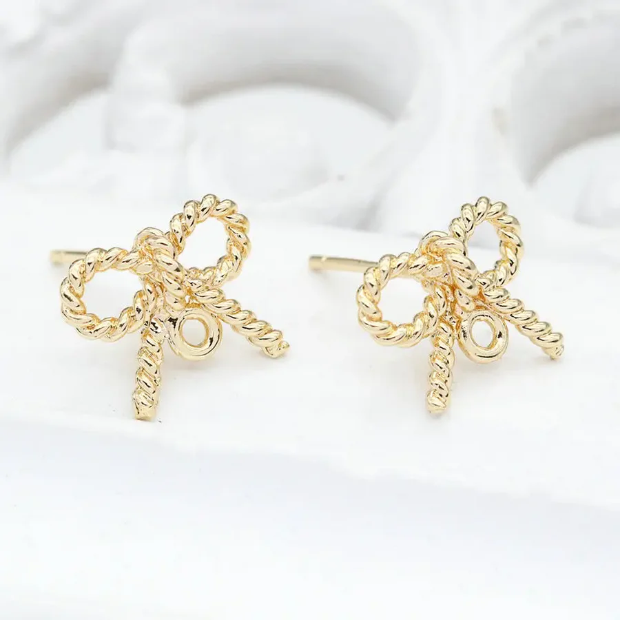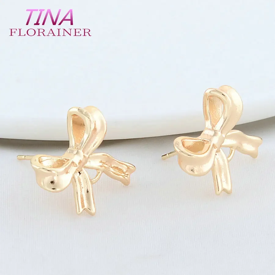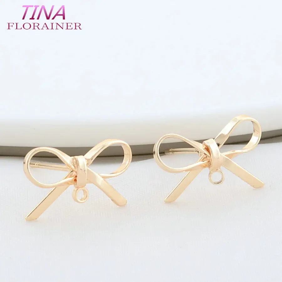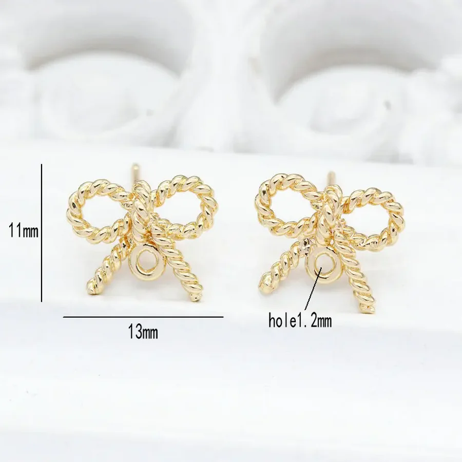 6PCS 10*14.5MM 18K Gold Color Plated Brass Bowknot Stud Earrings Pins High Quality Diy Jewelry Findings Accessories