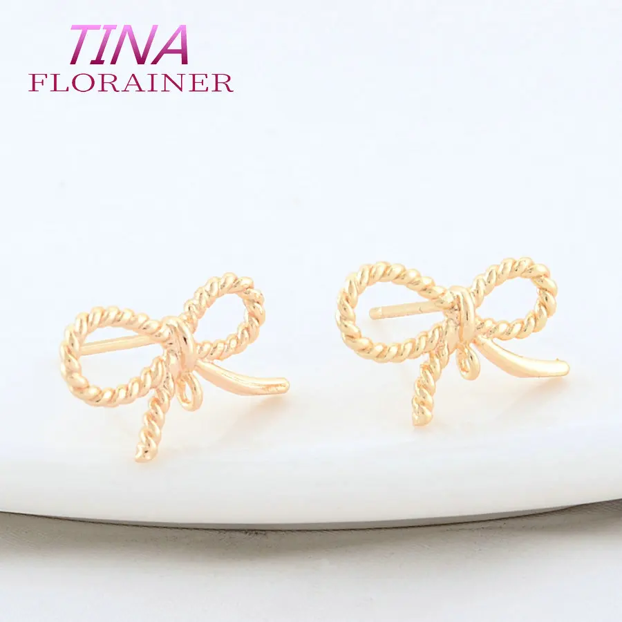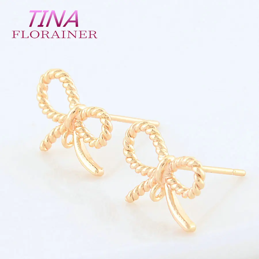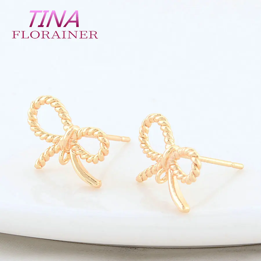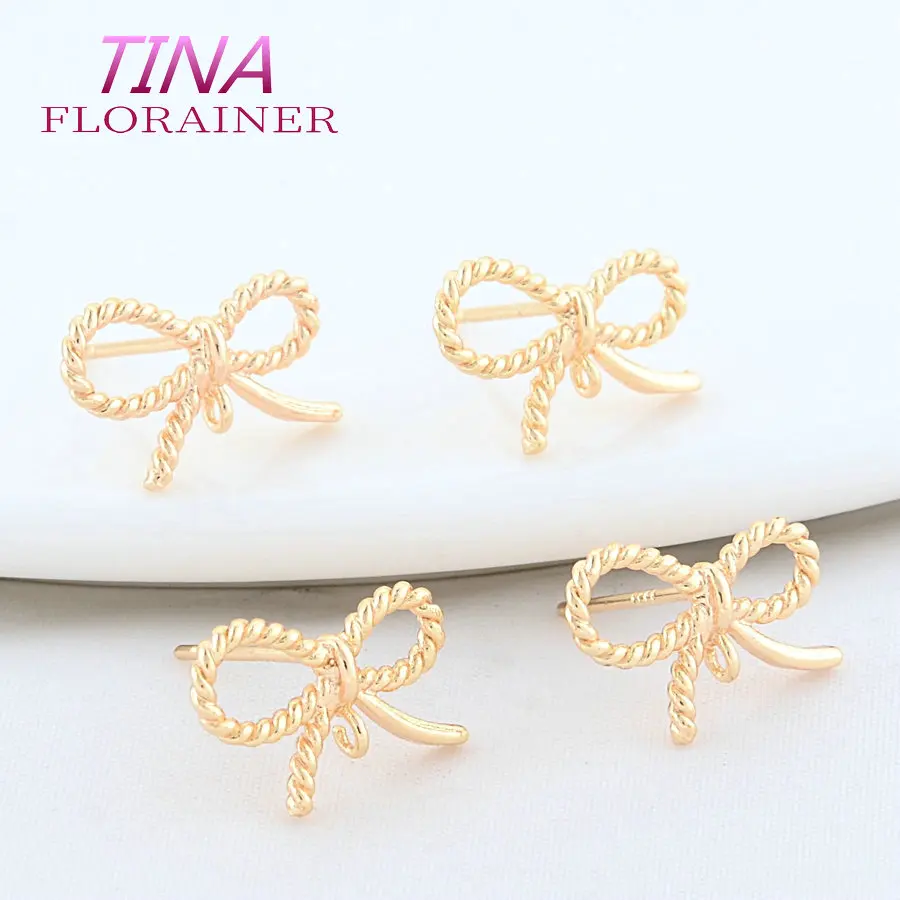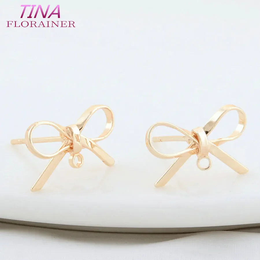 6PCS 10*14.5MM 18K Gold Color Plated Brass Bowknot Stud Earrings Pins High Quality Diy Jewelry Findings Accessories