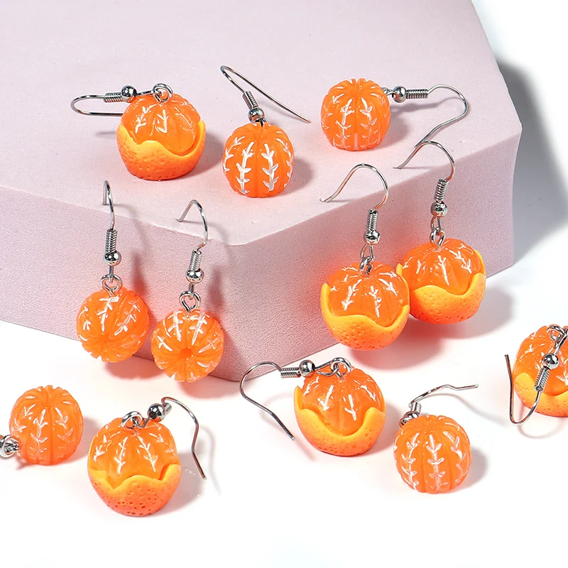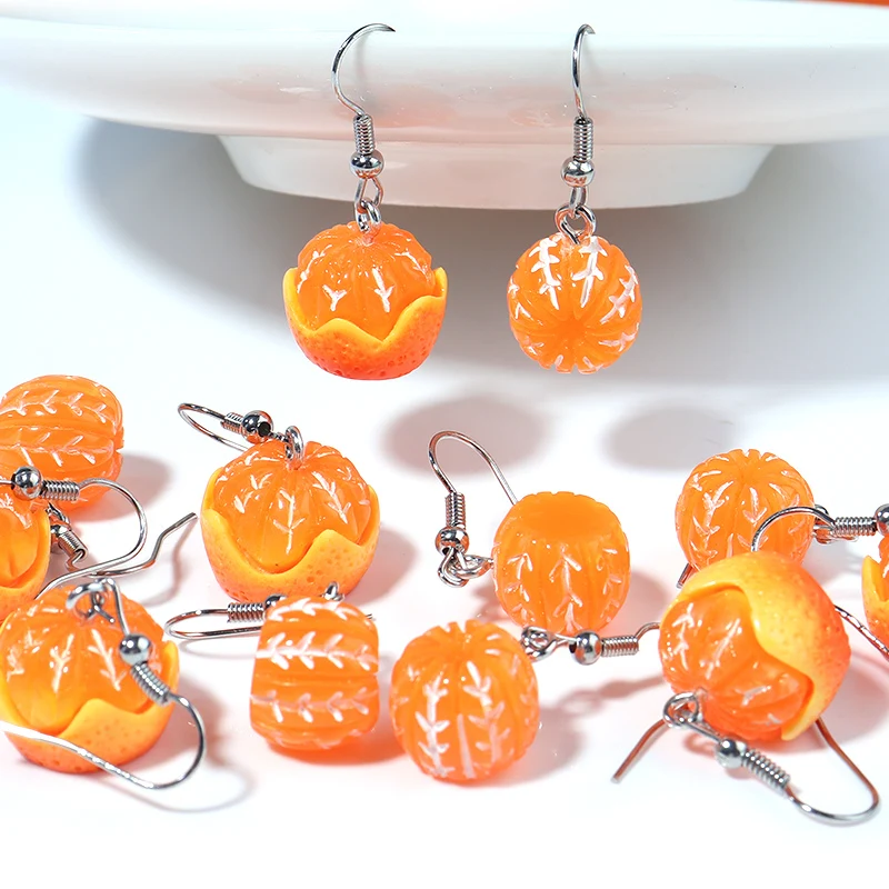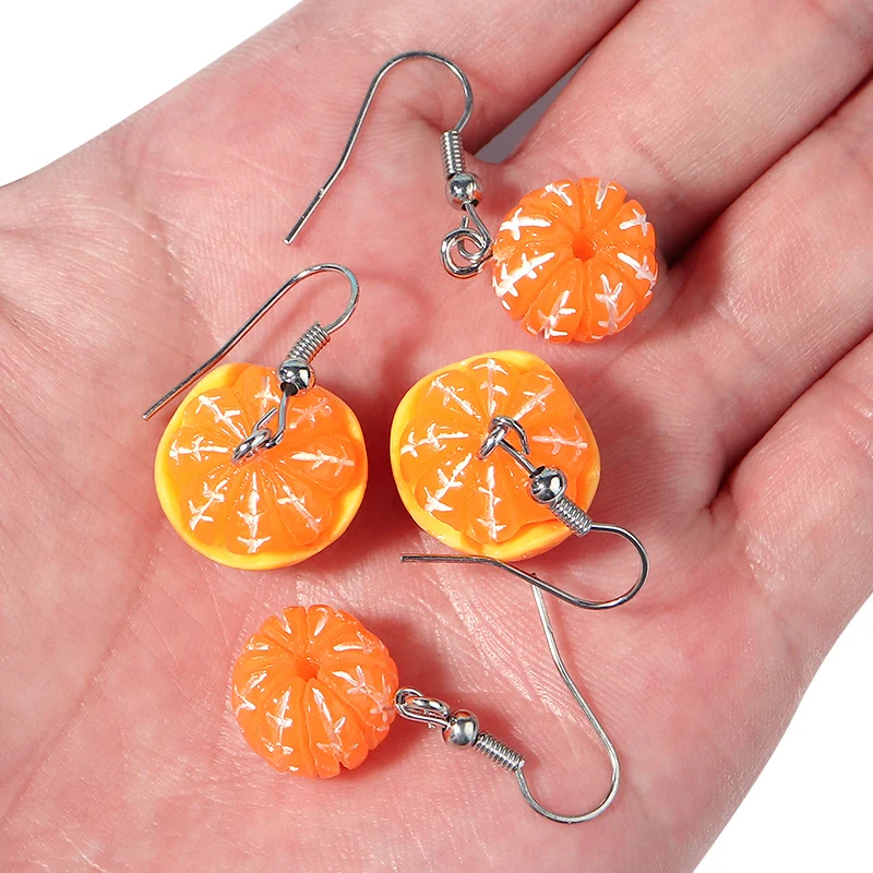 Emulational Tangerine Earring Set For Women Summer Fruit Jewelry Accessories Earrings Keychain Diy Jewelry Making Supplies