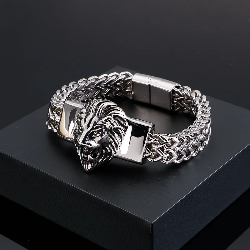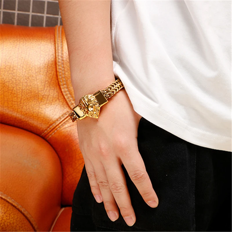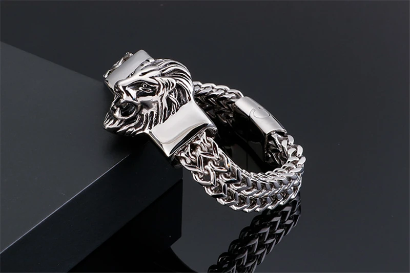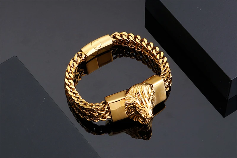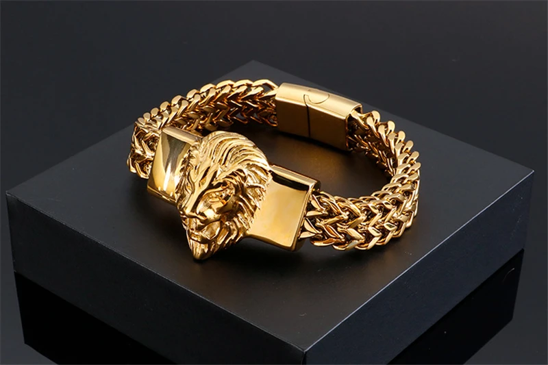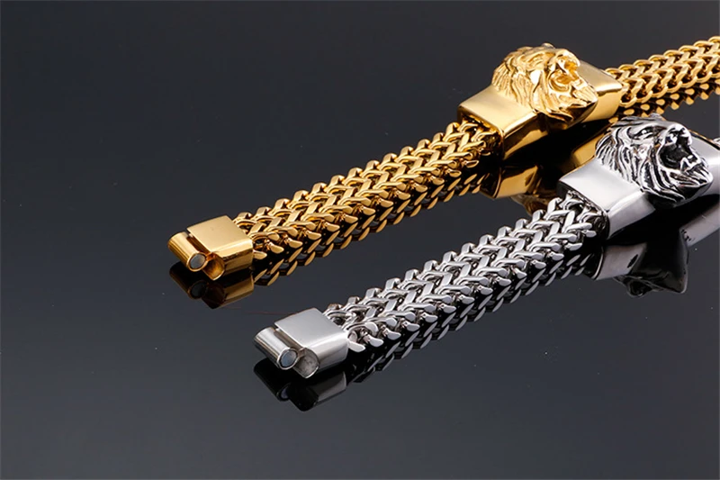 Lion King Charm Bracelet Men High Quality Stainless Steel Gold Silver Color Animal Wristband Fashion Jewelry Friendship Gifts