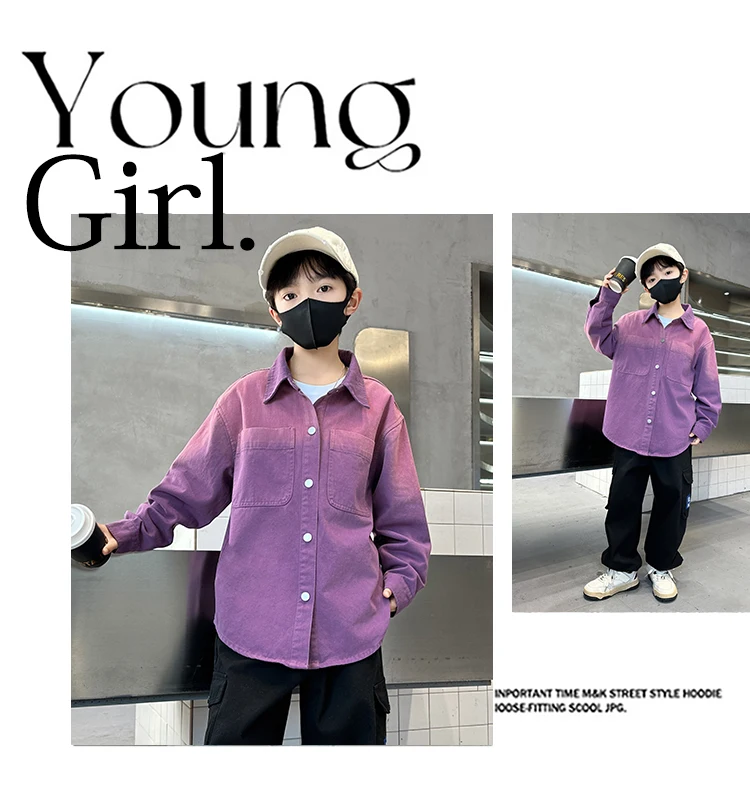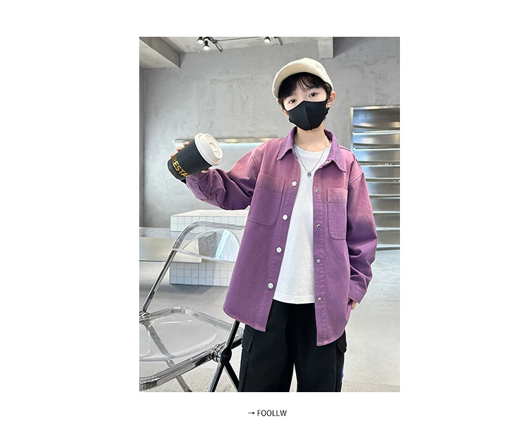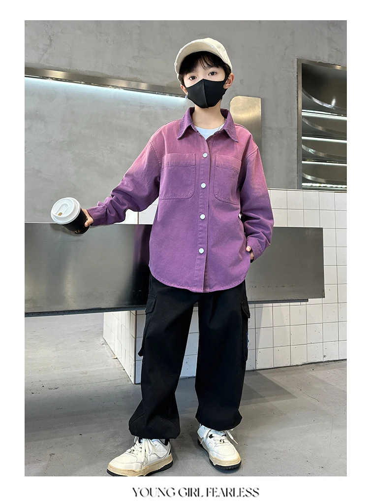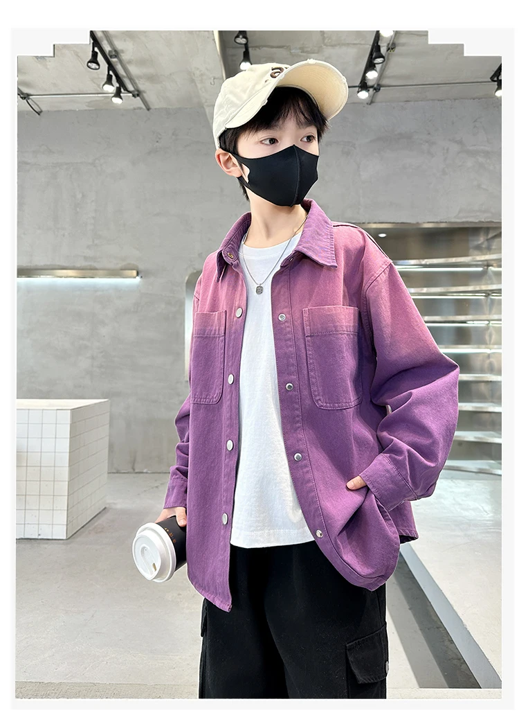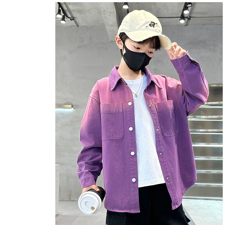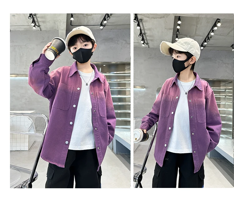 New Design Kids Long Sleeve Purple Colored Denim Shirt for Boy Casual Denim Shirt Outfit Child Fashion Spring Autumn Clothing