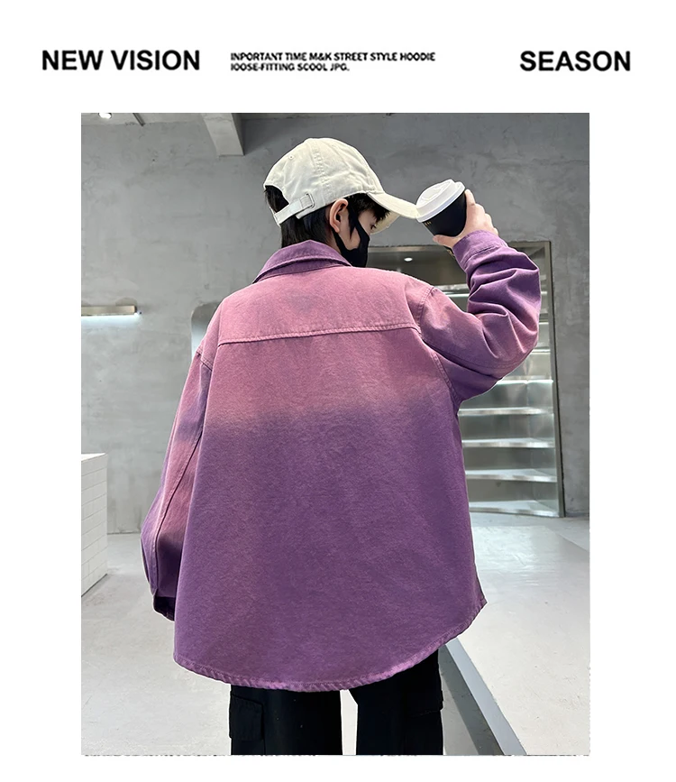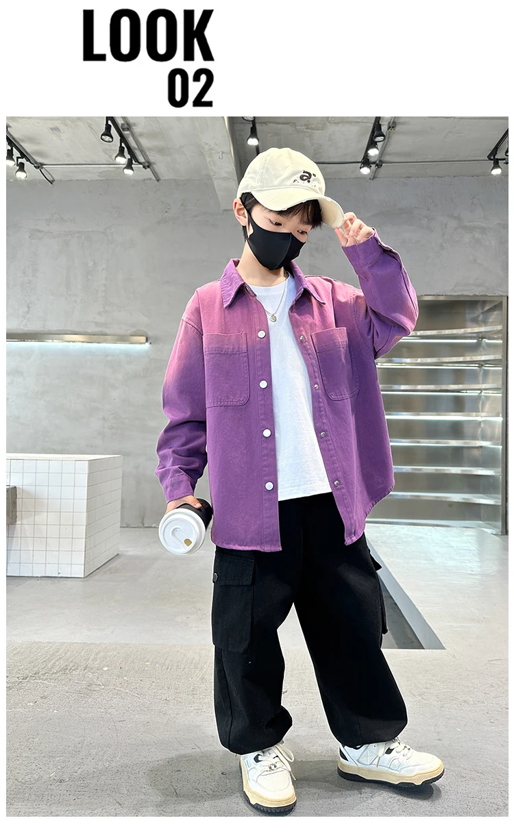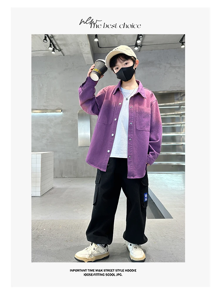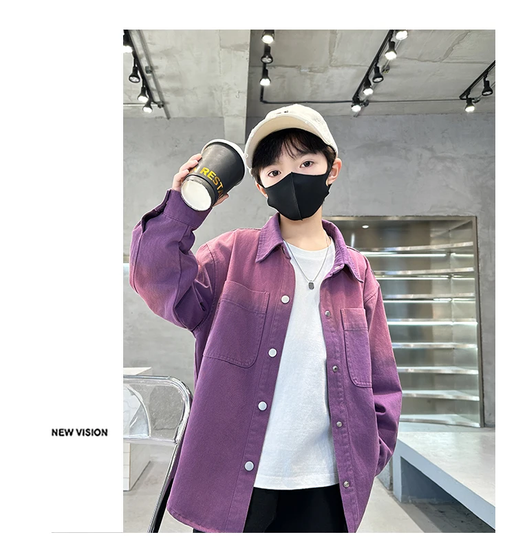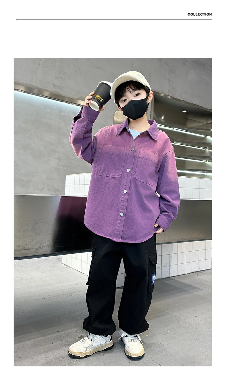New Design Kids Long Sleeve Purple Colored Denim Shirt for Boy Casual Denim Shirt Outfit Child Fashion Spring Autumn Clothing